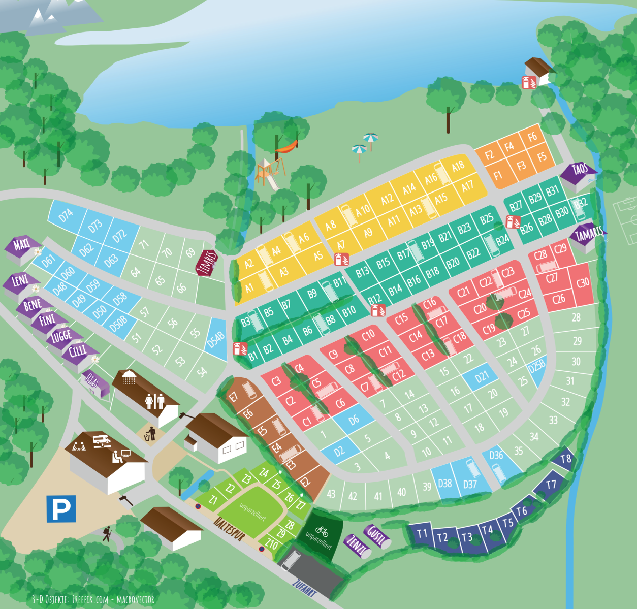 - Stellplätze für die Saison 2026 können online gebucht werden für: